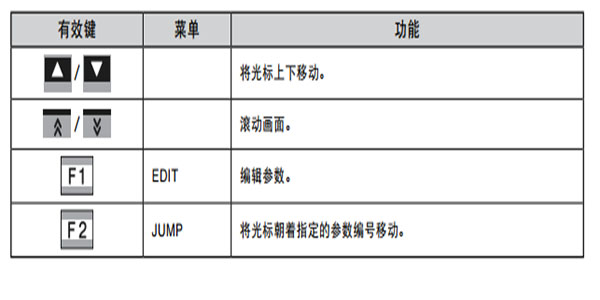 機器人參數編輯時的有效鍵及子菜單的內容如下。
