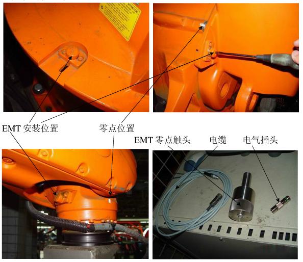 選擇調整 > EMT > 帶負載校正 > 偏差學習。 2. 輸入工具編號。用工具OK 確認。 選項窗口打開。所有未學習工具的軸都顯示出來。編號最小的軸已被標記。 3. 從選項窗口中標記的軸上取下測量筒的防護蓋。 將 EMT 擰到測量筒上。然后將測量導線連到 EMT 上,并連接到底座接線盒的接口 X32 上。 4. 按下軟鍵學習。 5. 按下確認開關和啟動鍵。 當 EMT 識別到測量切口的最低點時,則已到達調整位置。機器人自動停止運行。選項窗口打開。該軸上與首次調整的偏差以增量和度的形式顯示出來。">