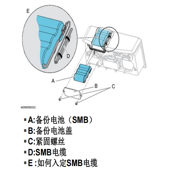 備用電池更換(如下圖),注:進入機器人工作區域前關閉所有連接到機器人的電源,液壓氣壓源.