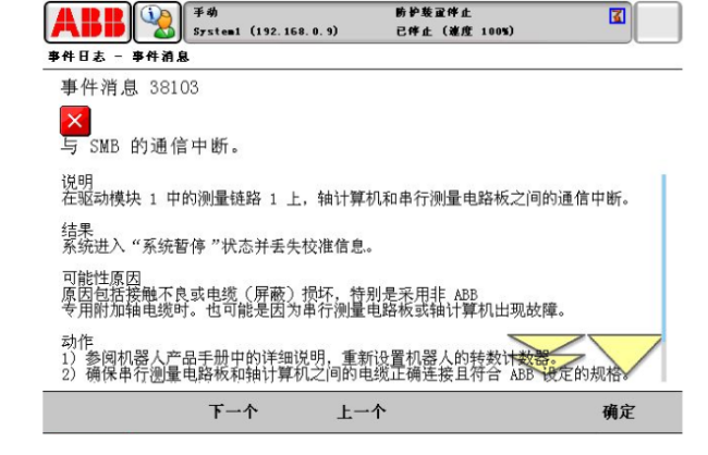 ABB機(jī)器人維修報(bào)警代碼38103(與SMB的通信中斷)